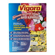 Alimento universal soluble para flores y plantas de 1 kg verde Vigoro, su fórmula ayuda durante el riego a nutrir las plantas para que obtengan un color intenso tanto en el interior como en el exterior en macetas o jardineras. Fertiliza y alimenta para aportar todos los nutrientes indispensables en las porciones correctas que ayudan a que las plantas tengan un crecimiento satisfactorio. Su uso es útil para la fertilización cada 15 días durante todo el año.