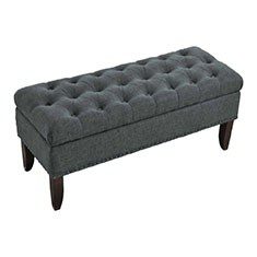 Banca capitoneada tapizada en tela con cajón de almacenamiento, con patas de madera sólida. Medidas: 104 x 40 x 45 cm.