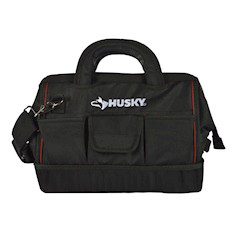 La bolsa porta herramientas de boca grande Husky de 35.56 centímetros está hecha para profesionales, construida con tela de poliéster de 2 capas de peso pesado 1680 y cuenta con un fondo moldeado e impermeable para proteger el contenido de la bolsa. Otras características incluyen una cremallera impermeable para mantener el contenido seco, manijas StayPut que permanecen en posición vertical, 14 bolsillos y asas en ambos extremos de la bolsa. Se puede ajustar una correa de hombro acolchada y desmontable para un ajuste personalizado.