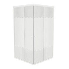 Cancel de baño en escuadra. Un panel fijo en cada extremo del cancel (pegado a la pared) y 2 puertas corredizas que abren en la esquina. Cristal templado de 6 mm. de espesor. Grabado en Medieval (esmerilado). Marcos de aluminio Blanco. Acabado Lacado. Fabricación a la medida. Lados iguales o desiguales. Indicaciones ancho medir el lado derecho y el lado izquierdo, sumando medidas deberá ser máximo 2.40 mts. Indicaciones alto La altura máxima es 1.87m. Las medidas se toman visto por fuera de ducha. De preferencia proporcionar croquis de planta del baño con las medidas del cancel. Garantía contra defectos de fabricación 1 año. Evite golpear los cantos (lados) del cristal. Vidrio de seguridad. Resistencia 4 a 5 veces más que un cristal regular hasta 170 Kg. No se requieren medidas milimétricas. Cualquier persona puede tomarlas. solo se necesita un flexómetro metálico. Toma la distancia entre ambos muros y esta es la medida base.
