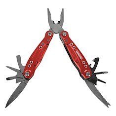 Herramienta multiusos Husky, elaborada de acero inoxidable con mango de aluminio rojo que permite manipularlo de manera sencilla. Su diseño con resorte facilita su operación, además su función 15 en 1 es apta para cortar, limar, abrir botellas o latas, desarmar y armar en el taller, hogar o durante actividades al aire libre. Sus medidas son 16 x 8 x 2.2 cm, por lo que puede transportarse en mochilas o cajas de herramientas. El empaque incluye estuche.