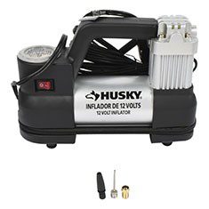 Inflador portátil. Excelente para dar aire a neumáticos y equipamiento deportivo de hasta 896 kilopascal. Liviano y portátil, se enchufa a un tomacorriente de 12 V de vehículo. Tiene un manómetro análogo que brilla en la oscuridad, un cable eléctrico y una manguera de alcance combinado de 4.57 m. Incluye una bolsa para transportar, boquilla para colchón, aguja para bolas y un adaptador de válvula Presta. Contiene todas las partes necesarias y un instructivo detallado que permite un fácil uso a mano para lograr una correcta funcionalidad del inflador.