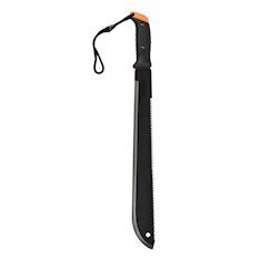 Machete doble filo Truper de 18 pulgadas (450 mm), útil para cortar y serruchar madera, tallos u otras superficies durante trabajos de cosecha y mantenimiento de jardinería. Elaborado de acero templado para mayor dureza en la hoja, posee la versatilidad de dos herramientas en una, con dientes de doble filo para cortes más rápidos. Cuenta con un mango ergonómico que brinda comodidad y máximo control, además, incluye una correa para asegurar a la muñeca y así brindar más seguridad en el uso.