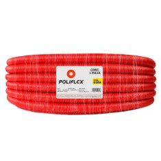 Manguera de polietileno roja Poliflex, cubre el cableado eléctrico para vivienda; evitando posibles intromisiones o filtraciones que puedan desgastarlo. Resiste colado de losas de concreto, reticulares y bovedilla, con más de 10 centímetros de espesor. Cuenta con una extensión de 50 metros y un diámetro de 2.5 centímetros. Fácil de cortar a la medida deseada. Incluye un kit de instalación con 1 lubricante, 4 tubos, 15 tapones, 1 cinta, 1 aromatizante y 80 sujetadores.