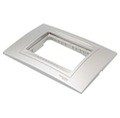 Placa de 3 módulos aluminio Schneider Electric, ayuda a instalar apagadores, contactos y diversos accesorios como tomas telefónicas dimmers y más. Está fabricada en plástico ABS auto extinguible de gran resistencia y dureza que evita la filtración de humedad y previene accidentes. Su tamaño es de 11.5 cm de alto x 7.8 cm de ancho y 1.5 cm de profundidad con capacidad para 3 módulos. Incluye chasis y 2 tornillos de instalación.