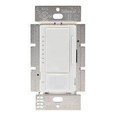 Sensor con atenuador digital de pared Maestro para aplicación unipolar, de escalera (3 vías) o ubicación múltiple Lutron, brinda un ambiente agradable en espacios interiores como habitaciones, baños, salas, cocheras, lavanderías y pasillos. Puede utilizarse en focos LED atenuables de 150 watts o incandescentes y halógenos de 600 watts. Se encuentra elaborado con un regulador de plástico compatible con cualquier decoración, sistema digital de botones que ayuda a aumentar o disminuir la intensidad de la luz, apagador que permite el control manual de las luces y sensor de movimiento con tecnología de sensor XCT para que la luz permanezca encendida mientras se encuentra ocupada la habitación, además detecta la luz del día. Trabaja con una corriente de 120 volts, tiene una cobertura de 81 m2 (9 x 9 m), campo visual de 180 grados, temporizador ajustable y modo opcional de desocupación. Contiene instructivo de instalación; la placa decorativa se vende por separado.