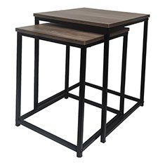 Set de mesas laterales Home & Home, su estructura se encuentra elaborada de metal y una superficie de aglomerado de madera que facilita su limpieza. Aptas para colocarse en lugares reducidos; además, su cuerpo color café rustik oak es ligero y fácil de mover. Cuenta con un diseño atractivo y versátil, pueden emplearse juntas o separadas. El empaque incluye 2 piezas con dimensiones de 40 x 40 x 50 cm y 35 x 35 x 45 cm.