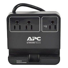 Apc supresor de picos 3 tomas de corriente, 3 puertos de carga usb, protección básica contra rayos y descargas de energía ideal para computadoras y aparatos electrónicos. Supresor a prueba de fallas, al momento de la descarga desconecta el dispositovo de la fuente de alimentación evitando el paso de corriente a su dispositivo, incluye indicador de falla de cableado e indicador de trabajo de protección.