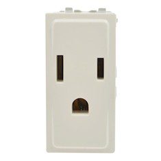 Toma de 2 polos y tierra (2P+T) Única Schneider Electric, sirve para conectar la clavija de un aparato eléctrico o electrónico. Trabaja en corrientes eléctricas de 127 a 220 volts con 15 amperes. Su tamaño es de 1 módulo, en sus lados laterales tiene pestañas que se ajustan a la base del registro de manera firme y segura. Está elaborada en plástico color marfil que la hace un complemento decorativo discreto. Sus medidas son 4.5 x 2.2 x 3.5 cm.